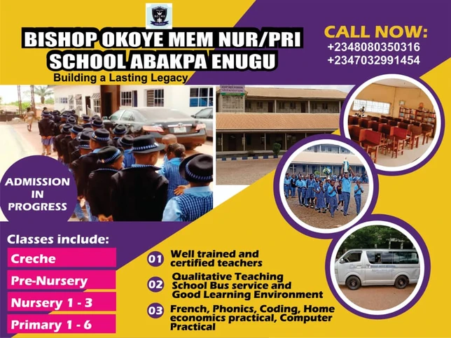 With its rich history, strong values, and commitment to excellence, Bishop Okoye Memorial Nursery and Primary School continues to be a beacon of hope and a source of pride for the community it serves.