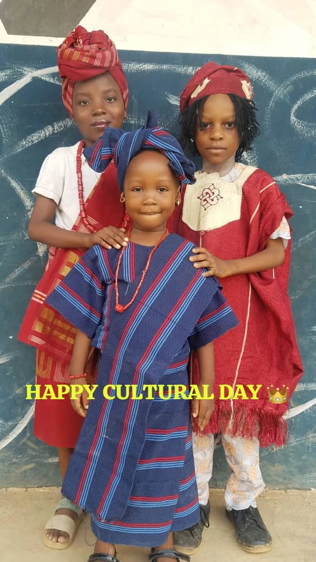 1. Cultural Parade: Students dressed in traditional attire representing different Nigerian ethnic groups, including Yoruba, Igbo, Hausa.